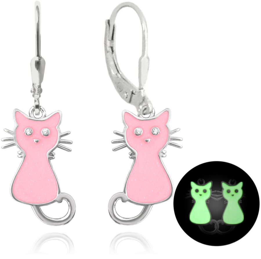 Svítící růžové stříbrné náušnice MINET KOČIČKY