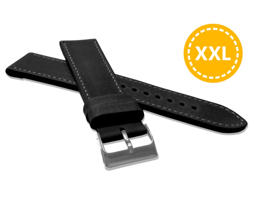 XXL Prodloužený prošitý černý řemínek LAVVU SPORT z luxusní kůže Top Grain - 22 XXL