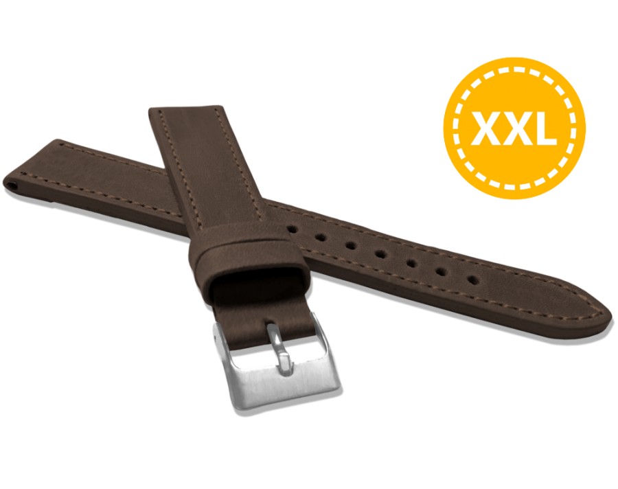XXL Prodloužený prošitý tmavě hnědý řemínek LAVVU SPORT z luxusní kůže Top Grain - 20 XXL